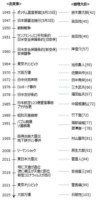 戦後の日本の主な出来事、その時の内閣総理大臣をまとめました。